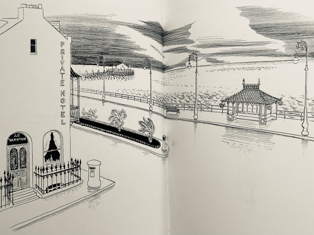 There’s comedy in the image, for sure, but there’s something in his architectural drawing that is at once both precise and characterful. Take, for example, the image below. It is titled ‘English Afternoon’ and shows the sort of seaside town some of us may have visited for summer holidays. The image accurately records the idiosyncrasies of such a place, but at the same time, it is infused with real character… You wouldn’t want to visit!